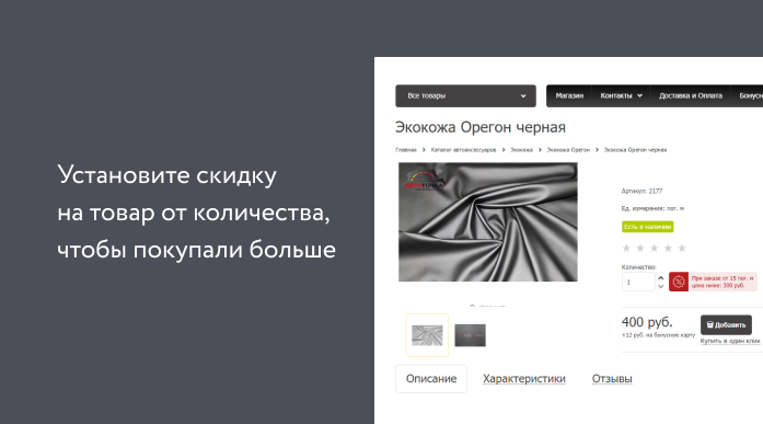 Мотивируйте вашей клиентов покупать больше! С помощью данного модуля можно задавать скидку для конкретного товара в зависимости от выбранного количества.