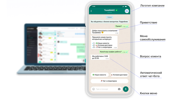 WhatsApp, Viber, ВКонтакте, Facebook Messenger, Телеграм, Instagram (Direct и комментарии), онлайн-чат, Яндекс.Диалоги, ТамТам, Скайп, WeChat