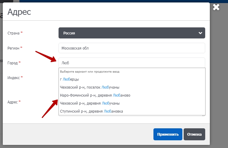 Также, подобные подсказки помогают избежать ошибок в написании ФИО клиентами при оформлении заказа.