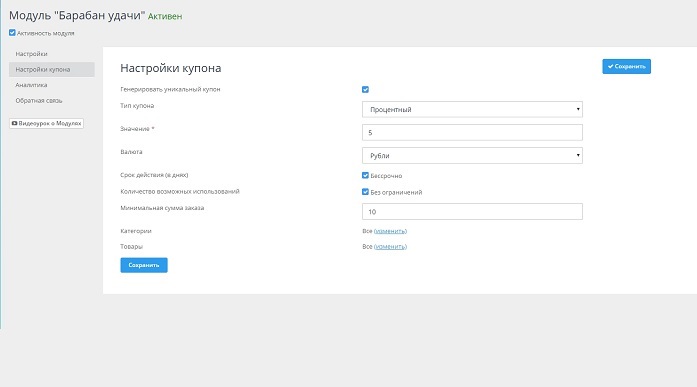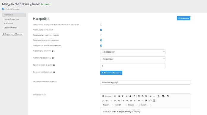 Инструкция. Настройка модуля "Барабан удачи"