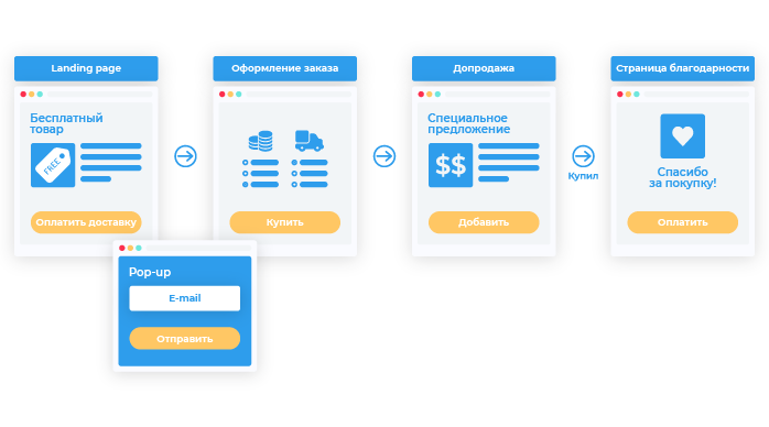 1. Посетители попадают на страницы воронки;