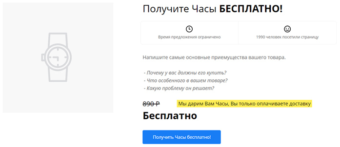 2. Воронка предлагает вашим посетителям бесплатный физический товар взамен на контакты и адрес доставки, всего лишь с просьбой оплатить стоимость доставки.