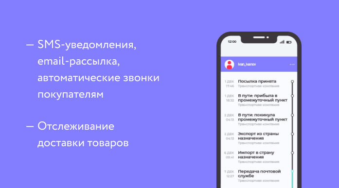 - уведомлять покупателей о статусах с помощью SMS-сообщений, Email-писем и даже совершать автоматические звонки;